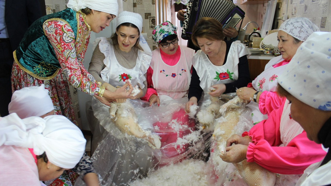 Вместе с жителями Чекмагушевского района гусей ощипали и первые леди республики: супруга врио Главы Башкирии Каринэ Хабирова и жена уфимского сити-менеджера Венера Мустафина. Национальную традицию вместе с ними поддержали члены фольклорного ансамбля «Молодые сердца». Праздник продолжили народные гулянья, где участвовали учащиеся школы, артисты районного дома культуры, члены фольклорных ансамблей, работники библиотеки и жители села. К ним присоединились и почетные гости.