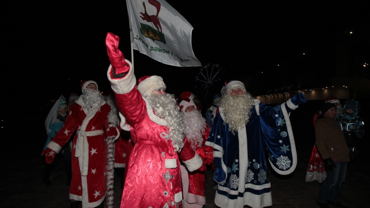 Раз, два, три — елочка, гори: в Уфе прошел парад Дедов Морозов и открытие главной елки