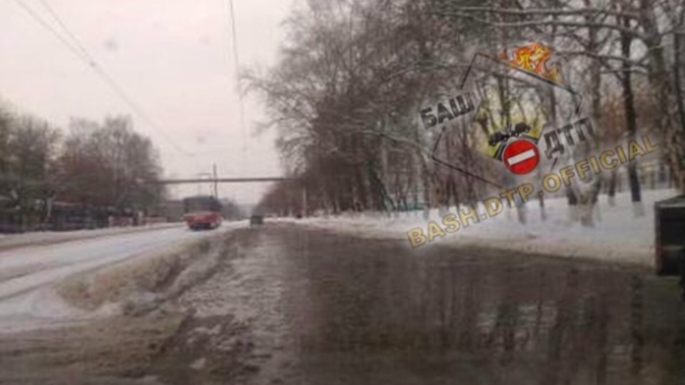 УФА, 9 янв 2019. /ИА «Башинформ», Ксения Калинина/.В Уфе 9 января «поплыла» улица Трамвайная. Об этом очевидцы сообщили в соцсетях. По информации пресс-службы МУП «Уфаводоканал», около дома №21 по улице Трамвайной произошла утечка из земли на водопроводе.