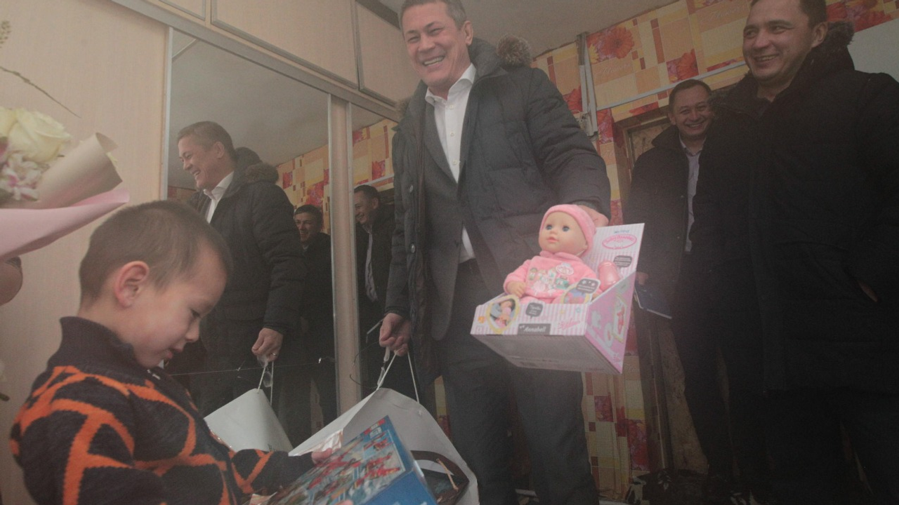 Руководитель Башкортостана и сегодня приехал в гости не с пустыми руками. Рамазану он подарил конструктор, Ириде - красивую куклу, а их маме - букет цветов. Семья получила в подарок и ту самую фотографию с личными пожеланиями руководителя региона. В разговоре за чашкой чая Радий Хабиров поинтересовался условиями проживания семьи Закирьяновых.