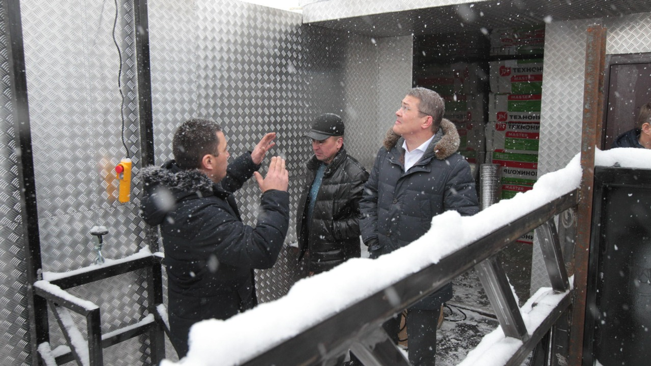 Радмир Закирьянов попросил руководителя республики посетить вместе с ним строящийся убойный цех. Радий Хабиров принял предложение и побывал на месте строительства. Здесь уже закончен монтаж самого здания цеха, но, по словам предпринимателя, для завершения всех монтажных работ требуются дополнительные финансовые средства, и они со своим партнером хотят оформить свой бизнес как доходогенерирующее предприятие.