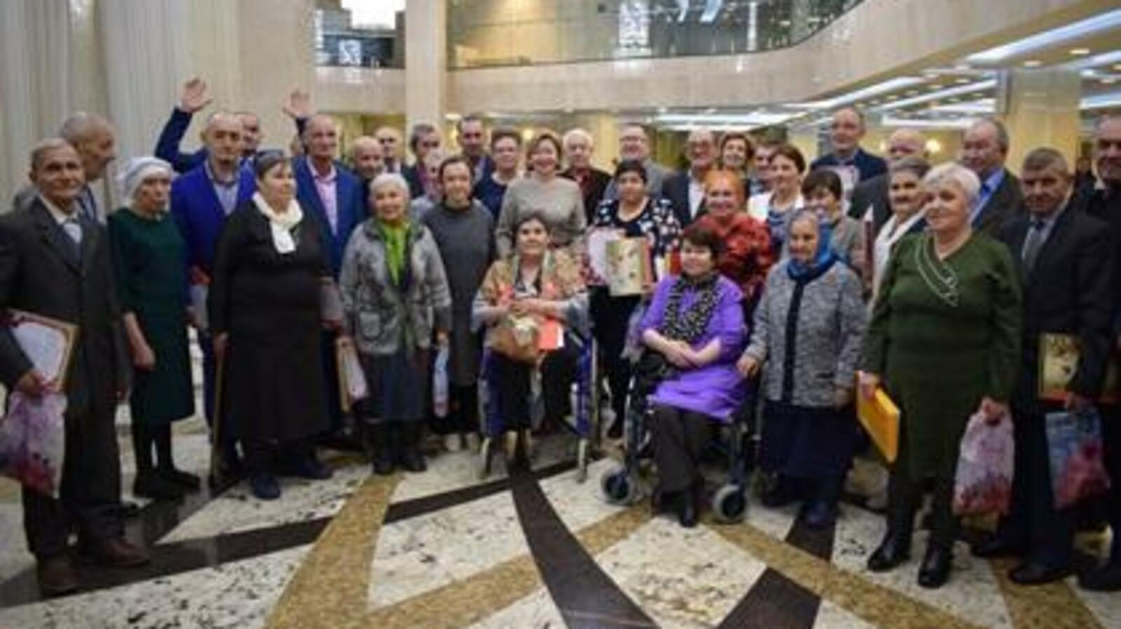 «Еще будучи министром, я много раз бывала в домах престарелых и мне очень приятно видеть вас такими красивыми, нарядными, подтянутыми, в пиджаках и галстуках. Я надеюсь, сегодняшний вечер запомнится вам надолго», - поприветствовала именинников Ленара Иванова.