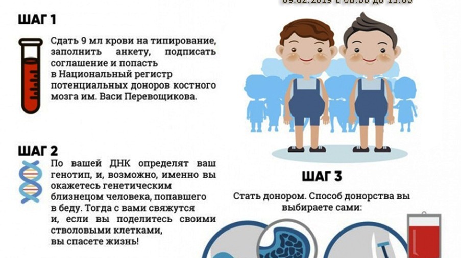 Акция направлена на расширение всероссийского регистра доноров костного мозга и спасение людей, страдающих онкологическими или наследственными заболеваниями, которым по жизненным показаниям нужна пересадка костного мозга от неродственного донора.