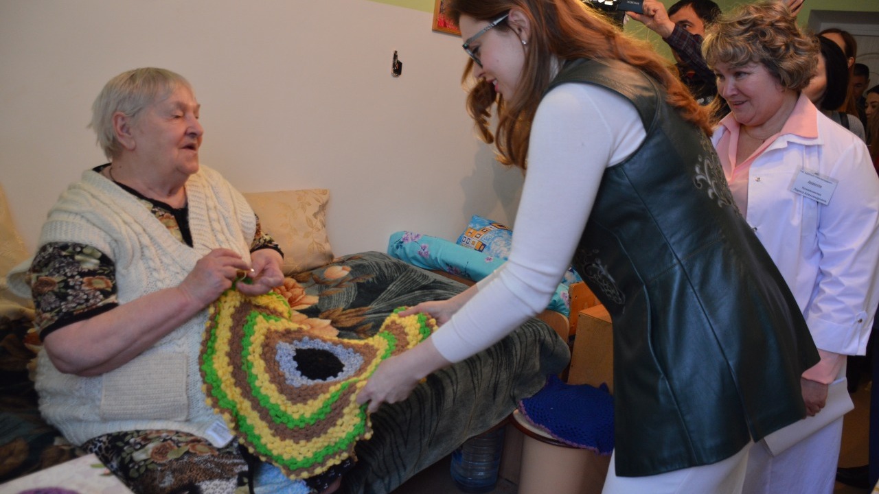 Почетные гости поговорили с жителями дома-интерната о качестве обслуживания в учреждении. По их словам, условиями в доме они довольны. На вопрос: «Что вам нужно?» постояльцы попросили туристические палатки, палки для скандинавской ходьбы, а также выразили желание почаще общаться с детьми из социального приюта, чтобы дарить им частичку своего тепла.