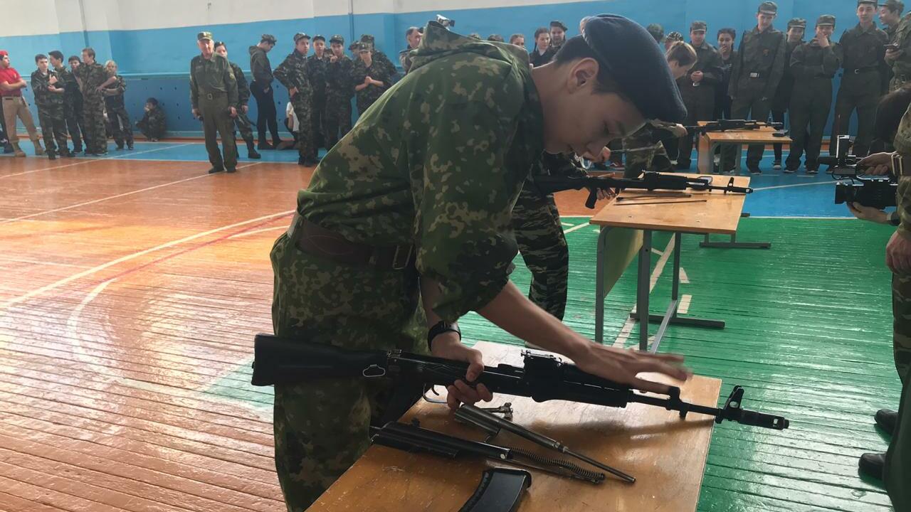 «Месячник проводится у нас в феврале. Сегодня состоялась игра «Зарница» среди учащихся 14 общеобразовательных учебных заведений. Представлено 14 команд по 10 человек в каждой. Соревнования проводятся по дисциплинам военно-прикладного спорта и включают в себя снаряжение магазина автомата Калашникова, сборку и разборку автомата», - сказал военком.