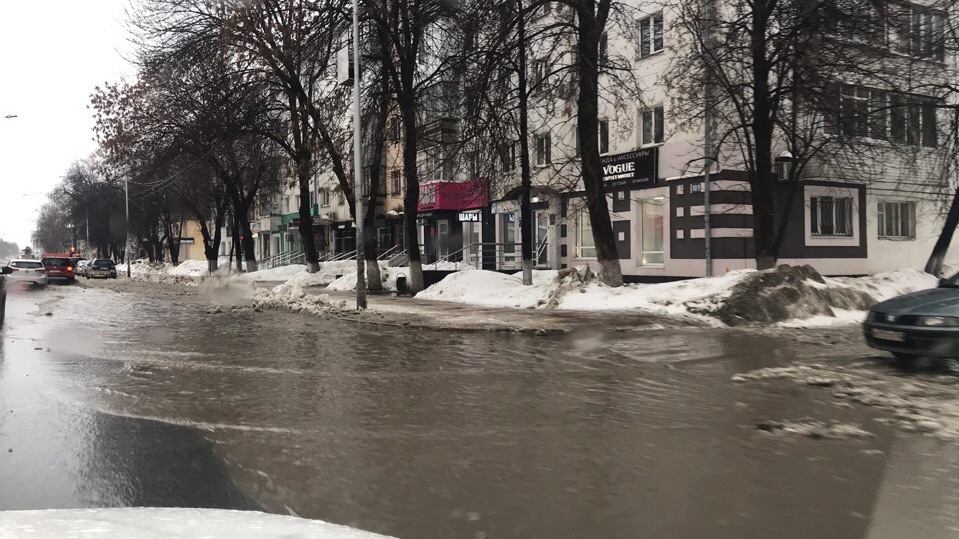 Уфимцы пожаловались на огромные лужи и гололед