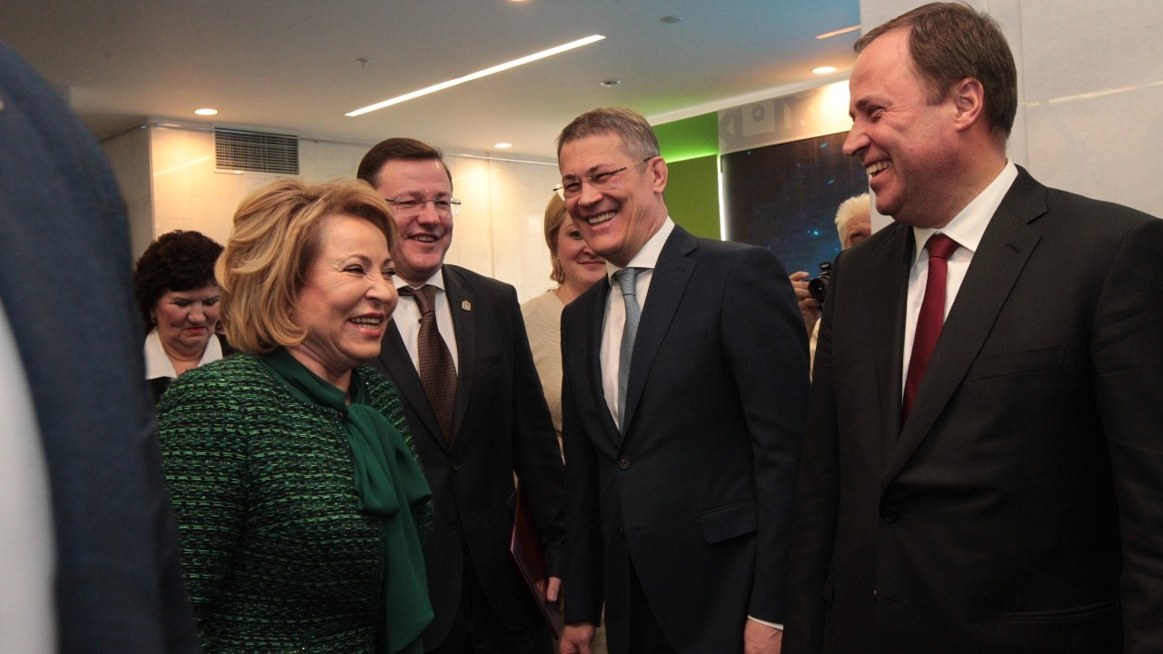В ней приняли участие председатель Совета Федерации Валентина Матвиенко, полпред президента России в ПФО Игорь Комаров, врио главы региона Радий Хабиров.