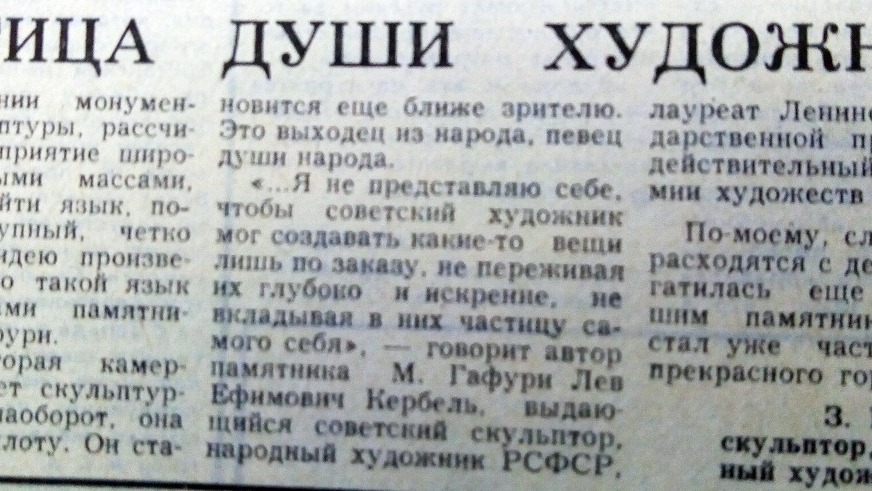 Мажиту Гафури создали выдающийся скульптор, народный художник СССР Лев Кербель и архитектор Лев Хихлуха.