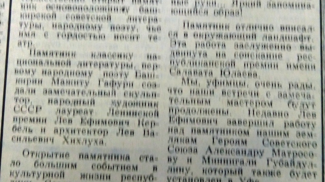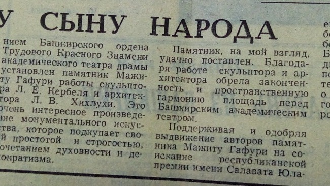 В сентябре 1978 года в Уфе на площади перед Башкирским академическим театром имени Мажита Гафури был торжественно открыт памятник основоположнику башкирской советской литературы, чье имя с гордостью носит театр. Памятник первому народному поэту Башкирии