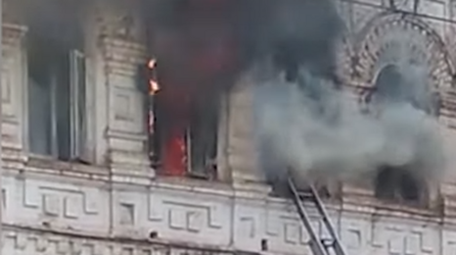 УФА, 1 май 2019. /ИА «Башинформ»/. В Белебее от пожара сильно пострадало старинное здание — объект культурного наследия «Гостиница Кузнецова» 1890 года постройки. Очевидцы выложили видео в соцсети, сообщает ГТРК «Башкортостан». Здание не эксплуатируется пять лет. Горела крыша и весь второй этаж. По данным МЧС по Башкирии, пожар тушили 6 сотрудников «12 отряда ФПС по РБ» с 2 единицами техники, пострадавших в ЧП нет.