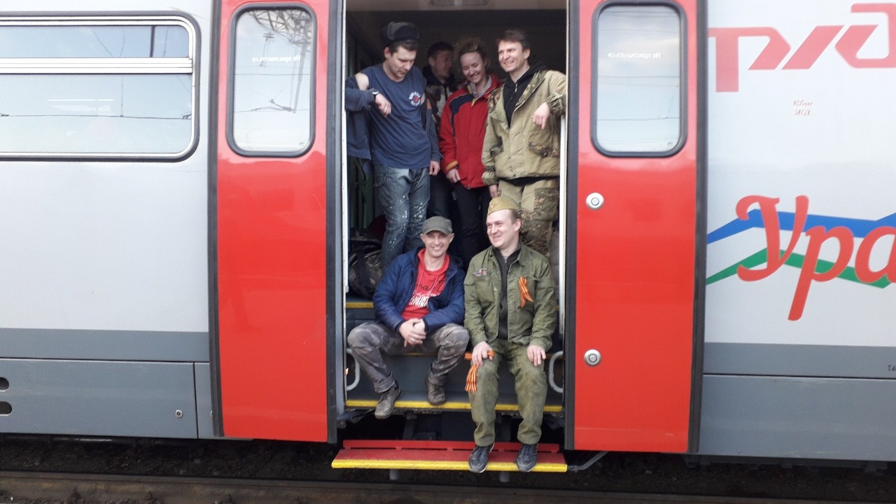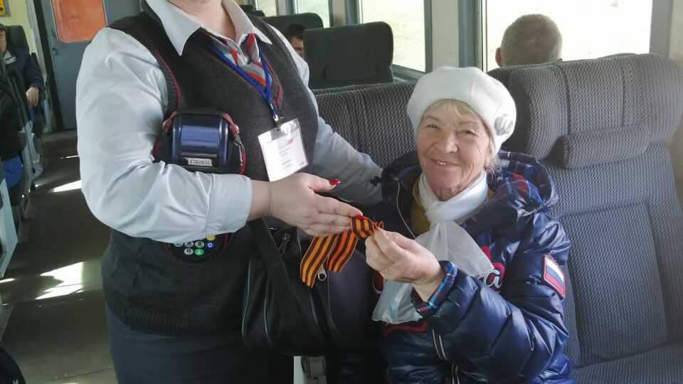 В Башкирии пассажирам электричек накануне Дня Победы вручают Георгиевские ленточки