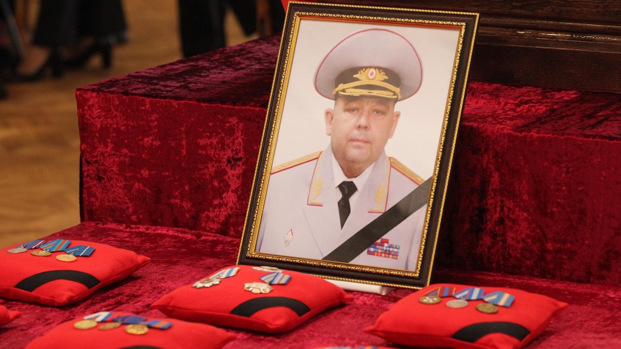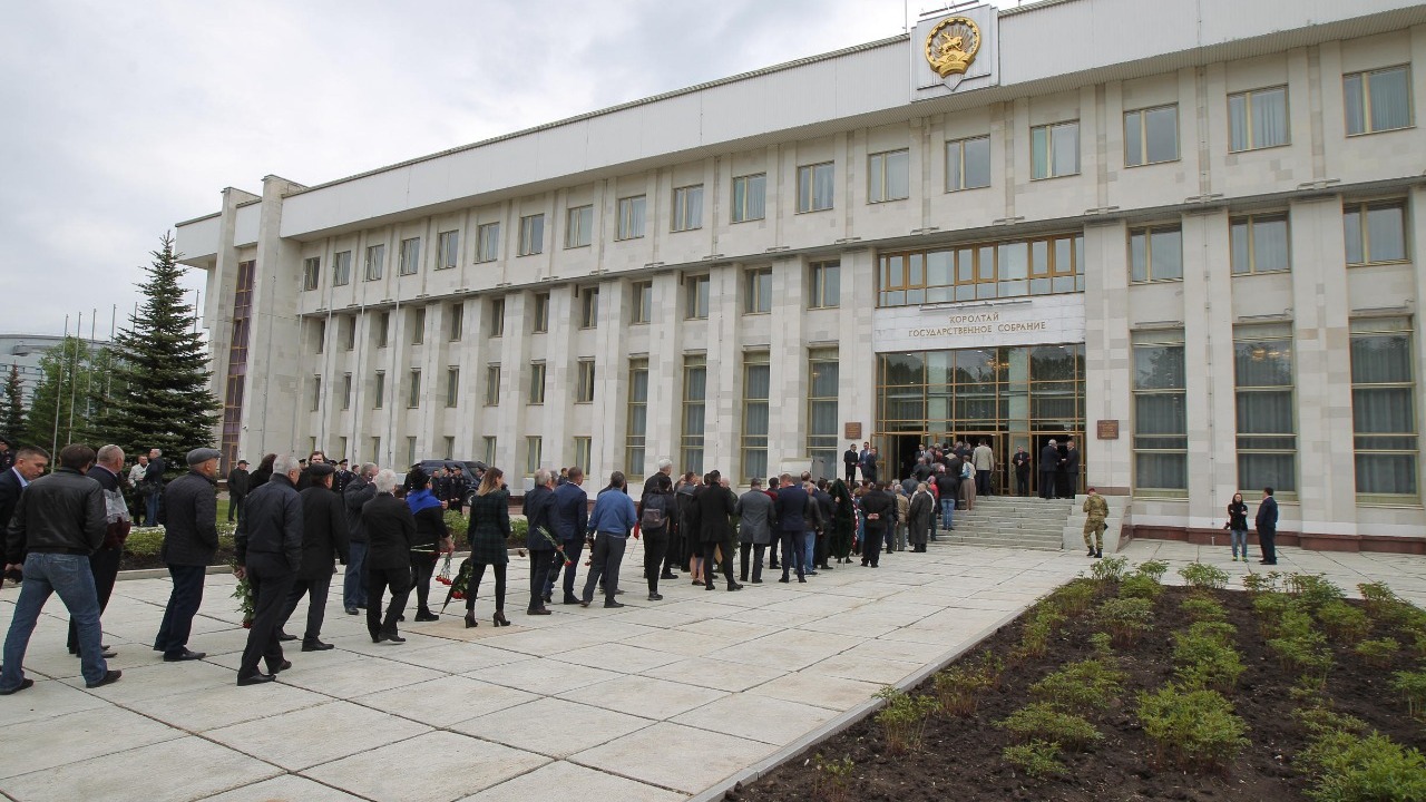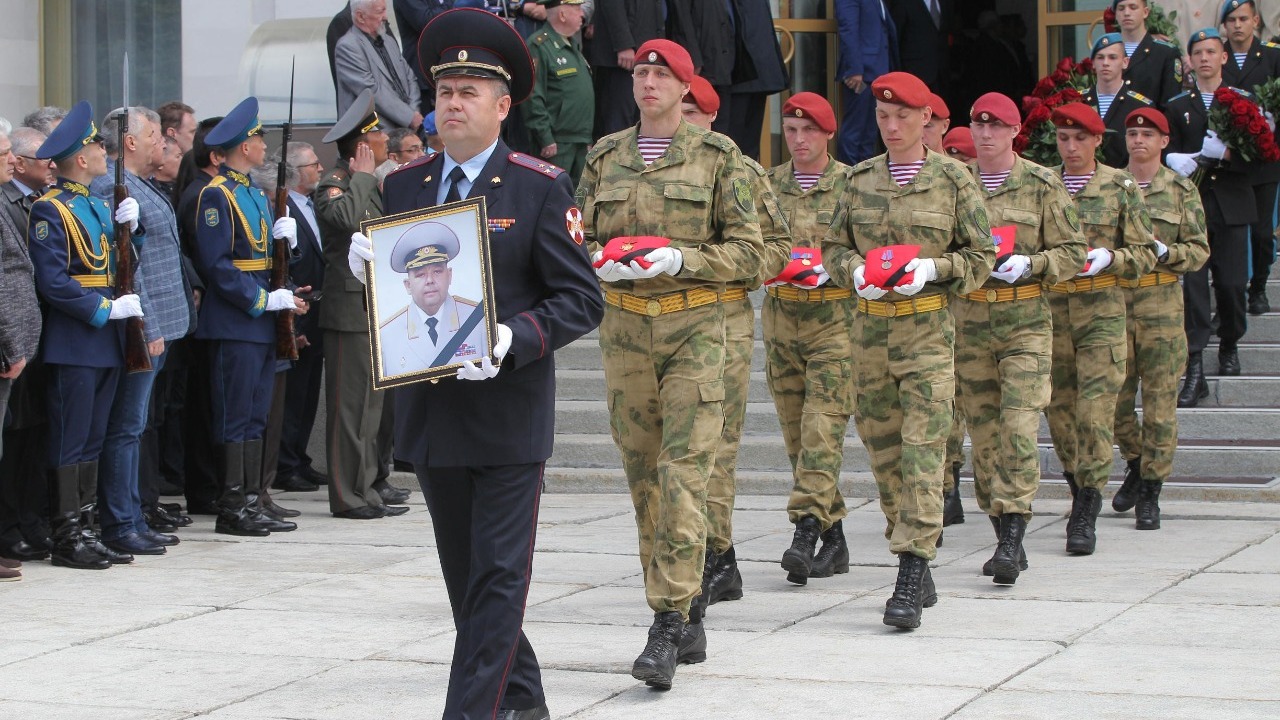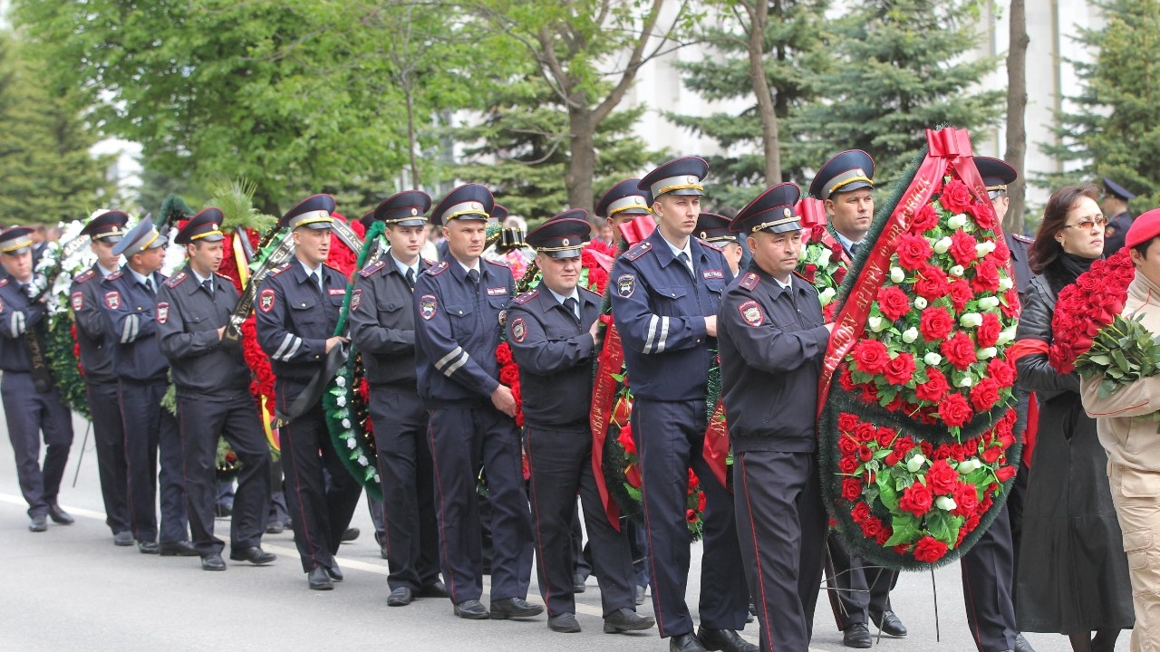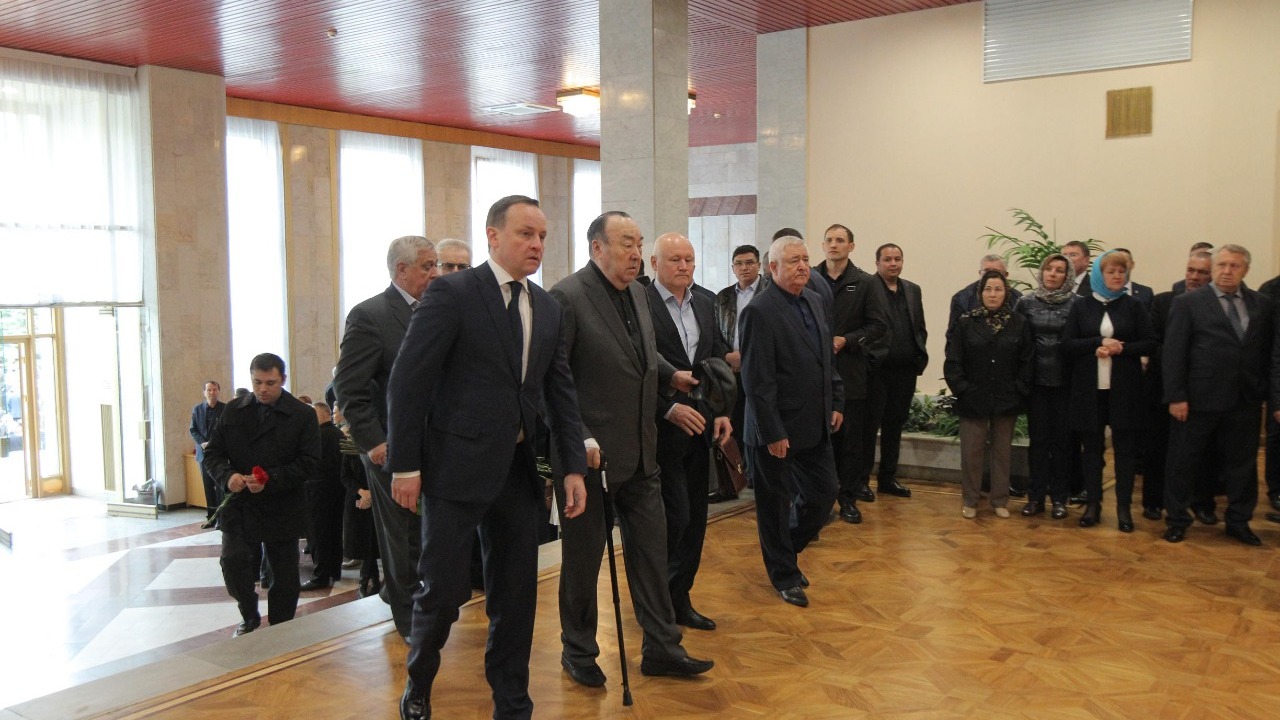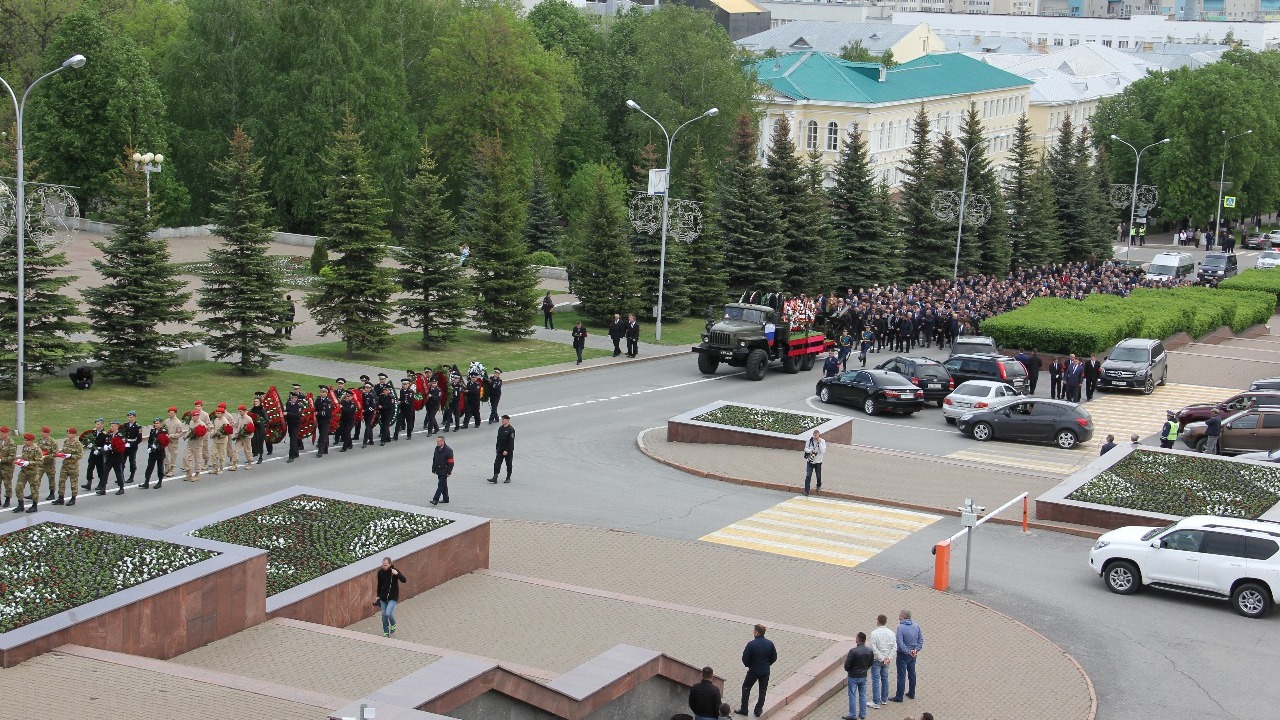 УФА, 16 май 2019. /ИА «Башинформ»/. Сегодня в Уфе, в Доме Государственного Собрания республики, прошла церемония прощания с исполняющим обязанности вице-премьера республиканского правительства, генерал-лейтенантом полиции Артуром Ахметхановым. В траурном митинге приняли участие врио главы республики Радий Хабиров, председатель Госсобрания республики Константин Толкачев, руководитель Администрации главы РБ Александр Сидякин, первый президент Башкортостана Муртаза Рахимов, члены правительства, депутаты, представители общественности, духовенства, рядовые граждане, сослуживцы Артура Ахметханова, его боевые товарищи, друзья, родственники и близкие.
