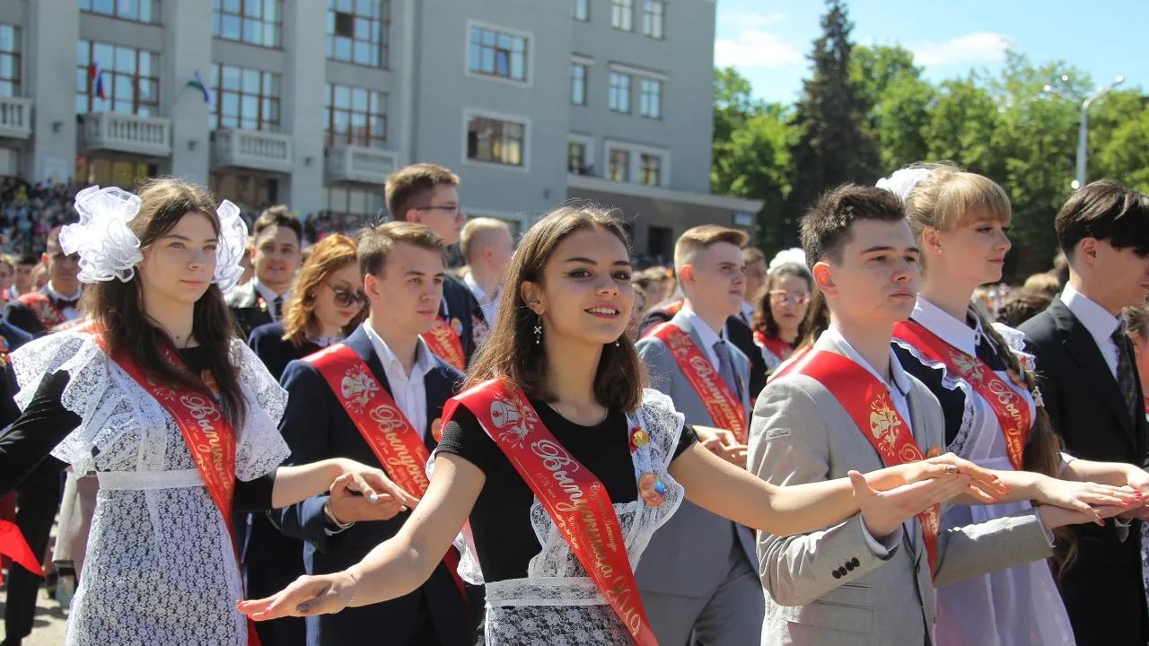Самым волнующим моментом для родителей выпускников стало появление стройных колонн одиннацатиклассников на Советской площади. Всего здесь собралось почти пять тысяч выпускников школ, гимназий, лицеев Уфы и Уфимского района, которым организаторы передали слова приветствия от руководителя республики Радия Хабирова.