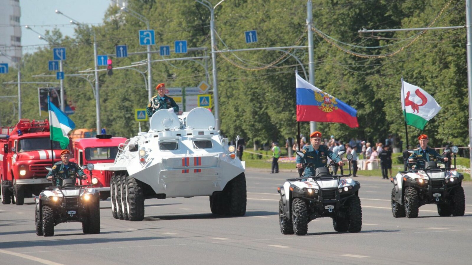 «Благодаря отваге и профессионализму этих сильных, мужественных людей мы чувствуем себя под надёжной защитой, - отметил руководитель республики. - Пусть успех всегда сопутствует в вашей нелегкой и опасной службе».В 16 парадных расчетах прошли сотрудники 22-го отряда федеральной пожарной службы по Башкортостану, управления пожарной охраны Уфы, кадетских классов учебных заведений города, а также 52 единицы современной и раритетной пожарной техники.