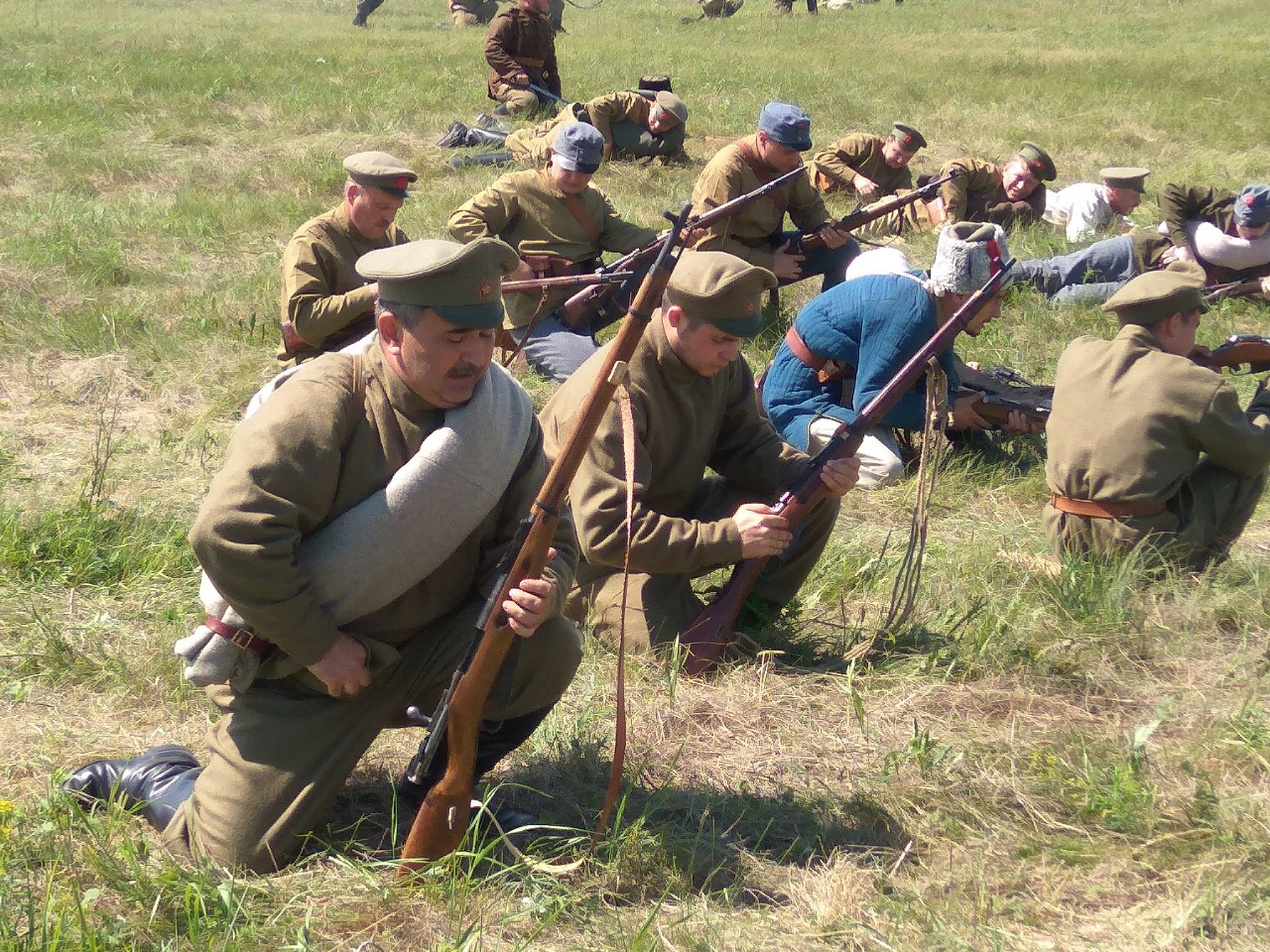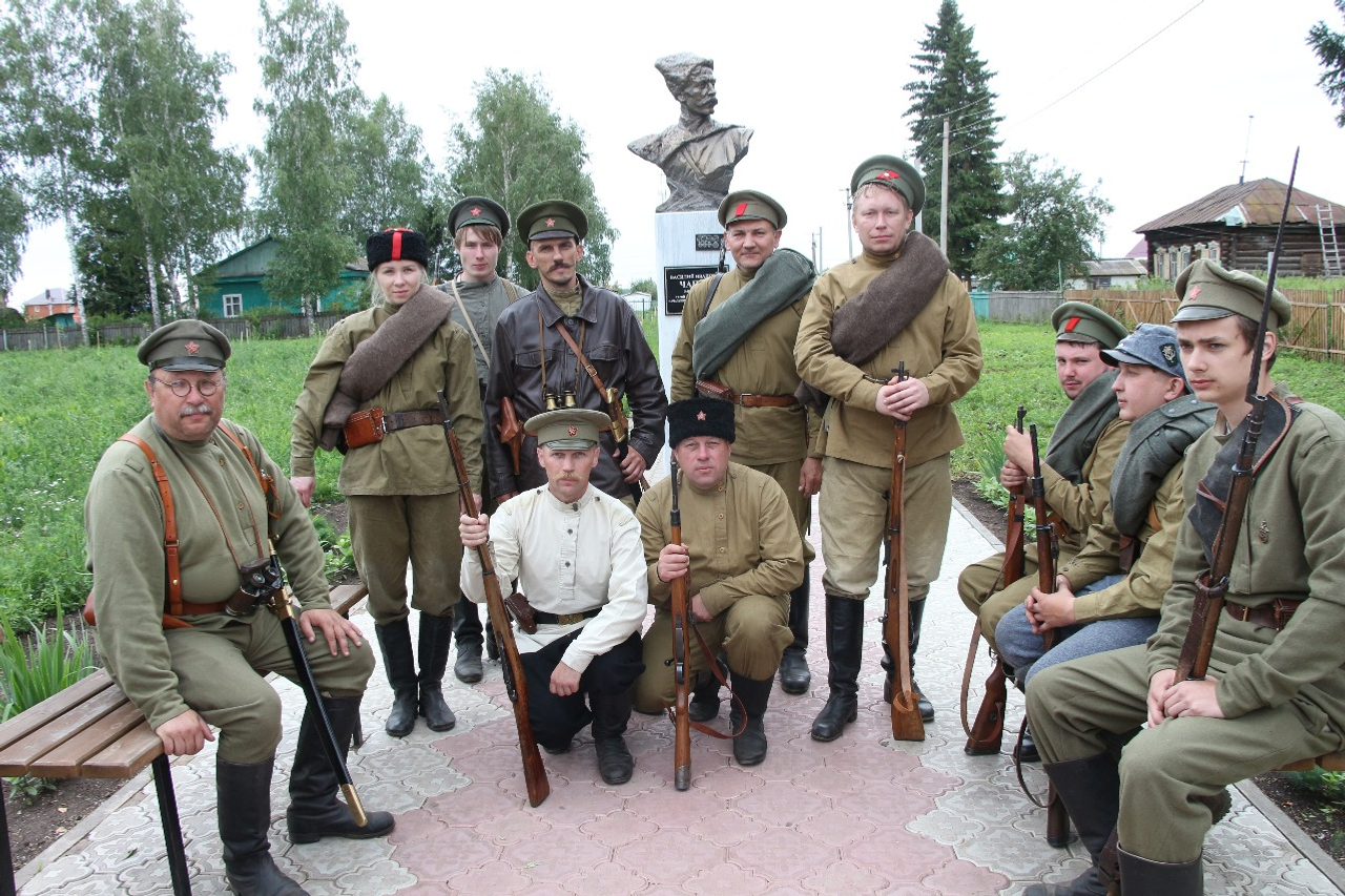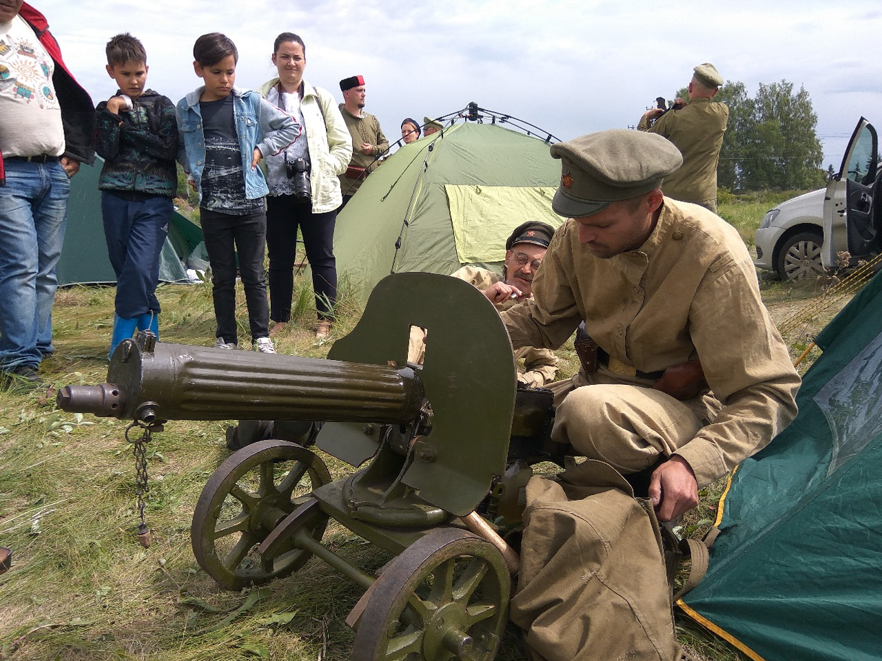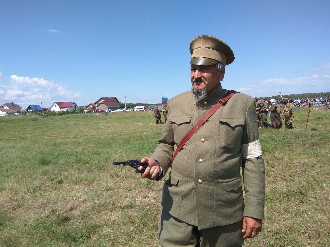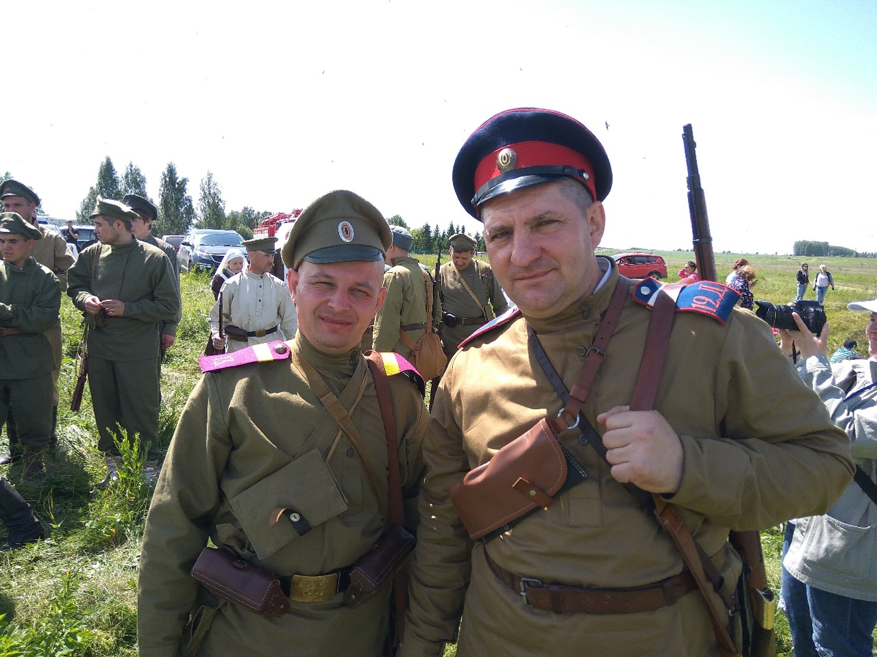 «Здесь сегодня собрались клубы из разных регионов. Мы представляем межмуниципальный военно-исторический клуб «Искатель» из Новоуральска Свердловской области. Нашему клубу 21 год. Занимаемся мы реконструкцией русской армии XX века — это Первая мировая война, Гражданская война и Великая Отечественная война. В Красном Яре мы были 10 лет назад. И, когда фестиваль «Гроза над Белой» был восстановлен после десятилетнего перерыва, мы с удовольствием сюда снова приехали. Мы представляем подразделение Красной армии — 25-ю стрелковую дивизию, где присутствуют образцы формы практически всех существовавших в то время армий. Форма Красной армии плавно перетекла из формы русской императорской армии и из формы интернационалистов — пленных австрийцев, перешедших на сторону Советской власти. Главное отличие красноармейцев — это красные звездочки или просто красные ленточки на фуражках. Единой формы тогда не хватало не только у красных, но и у белых. Страна была измотана, война шла уже пять лет, и что-то массово шить не получалось», — рассказал руководитель клуба «Искатель» Олег Лобанов.