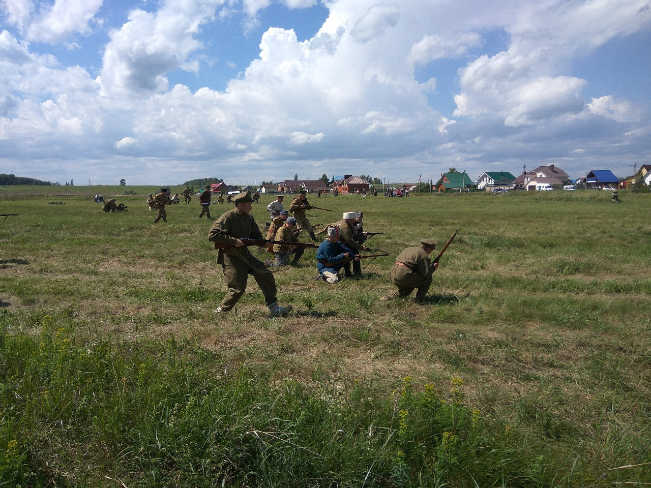 Главным событием дня стал реконструкционный бой за Уфу, разыгранный на берегу, неподалеку от памятника. Белые шли в атаку, раздавались выстрелы, сверкал огонь, медсёстры хлопотали на поле боя возле раненых. Потом в наступление пошли красные, белые отступали. Бой шёл с переменным успехом. Но победа, как и положено, осталась за бойцами 25-й стрелковой дивизии, которая впоследствии стала носить имя «чапаевская».