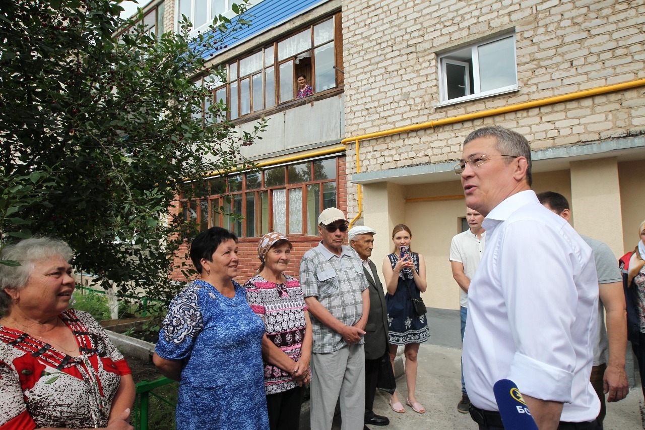 Радий Хабиров в поселке Чишмы оценил ход ремонта по программе «Башкирские дворики»