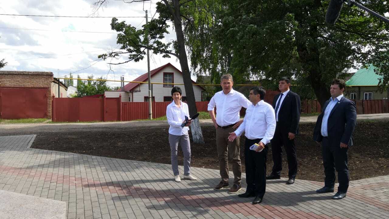 УФА, 23 июл 2019. /ИА «Башинформ», Азат Гиззатуллин/. Сегодняшняя рабочая поездка руководителя Башкортостана Радия Хабирова после Белебея продолжилась в Давлекановском районе. В Давлеканово он осмотрел ход благоустройства местного сквера на улице Садовой. По словам главы городского поселения Вячеслава Гапоненко, раньше на месте сквера была заброшенная территория, здесь был овраг, куда стекали сточные воды. После обращения местных жителей было принято решение благоустроить это общественное пространство. Сюда завезли грунт, положили тротуарную плитку, установили скамейки и фонари. Благоустройство сквера обошлось в 5,8 млн рублей. В центре сквера будет установлен бюст Героя Советского Союза Владимира Ферапонтова, который работал директором Давлекановской средней школы №2, затем воевал на фронте, был командиром пулеметного расчета и погиб в 1943 году.