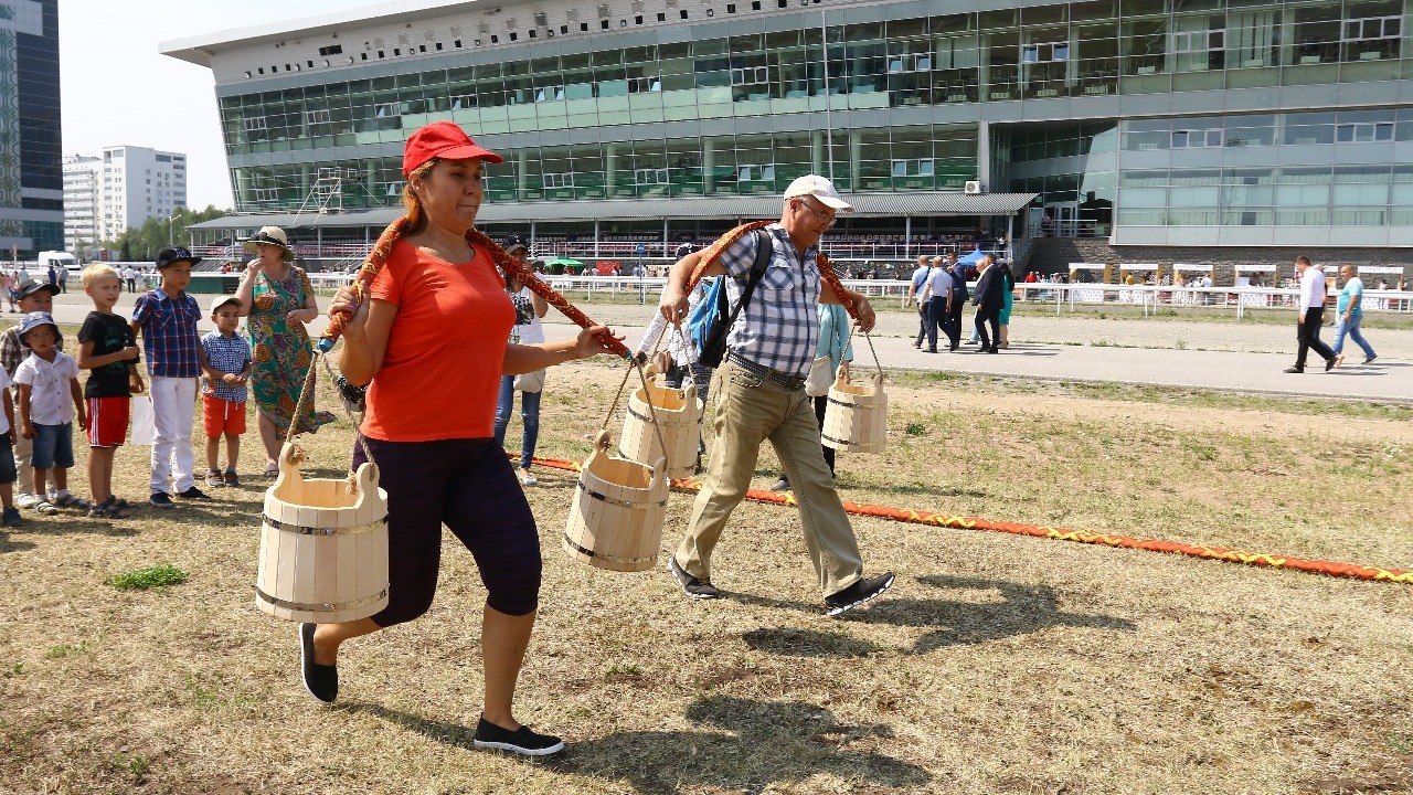 УФА, 27 июл 2019. /ИА «Башинформ»/.На территории ипподрома «Акбузат» проходит этно-фестиваль башкирского кумыса «Йайляу». Производители кумыса из разных районов Республики Башкортостан представили свой продукт.
