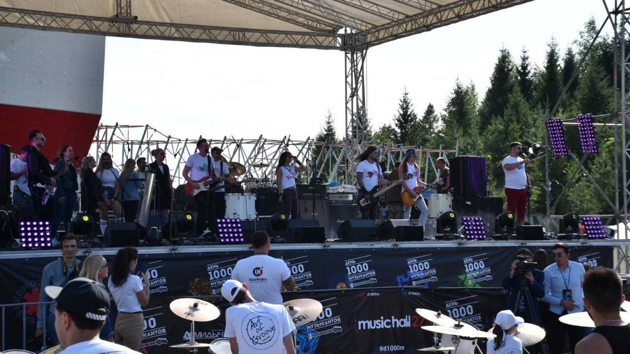 На сцене фестиваля выступили группы Nu Project, Дамаск, Дикси, The Times и Все ОК. Музыканты на площадке подыгрывают любимым песням - трек-лист каждой из групп открытый, посмотреть его можно в группах или на сайте d1000m.com. Первое синхронное исполнение было в 16.00 часов, второе запланировано на 18.00.
