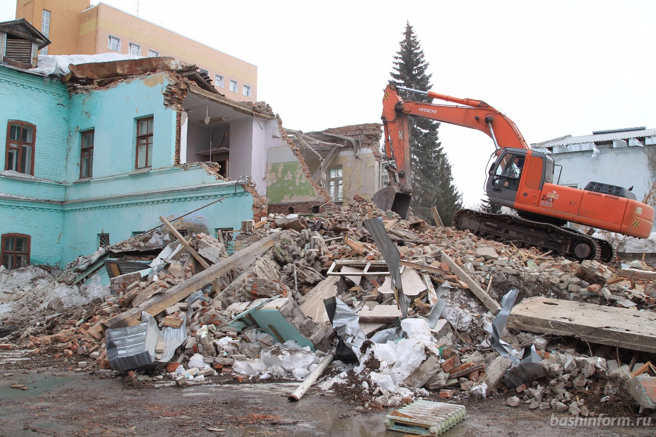 В Уфе полностью снесли здание бывшего Приходского училища на улице Кустарной