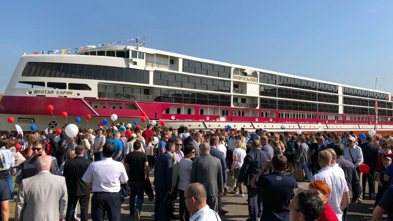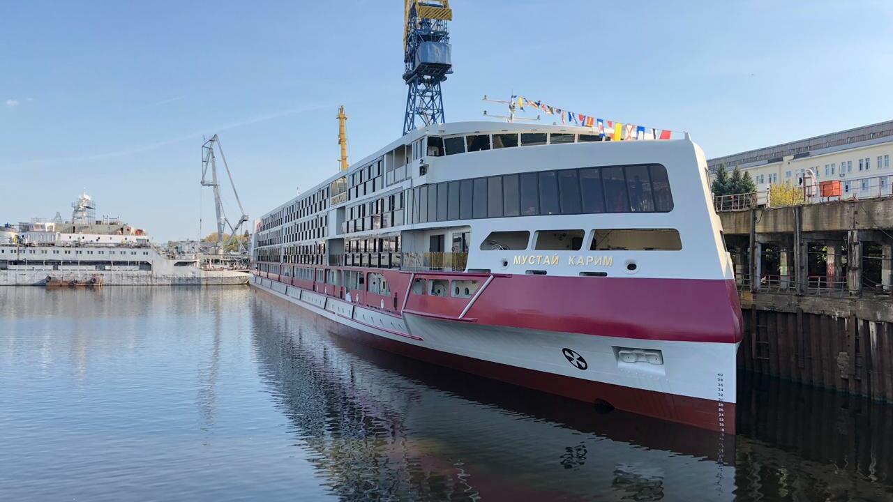 Круизный лайнер «Мустай Карим» спустили на воду в Нижнем Новгороде