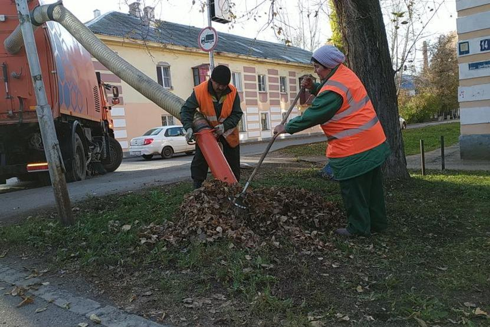 В Уфе опавшую листву собирают «дорожными пылесосами»