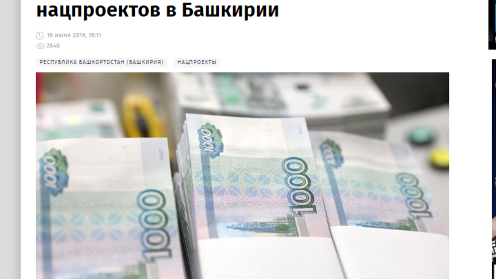 О Башкирии пресса сообщала, что в республике на базе сельских школ начали работу 133 образовательных центра «Точка роста». Освещалось получение Башкирией 208,5 млн рублей на обновление материально-технической базы образовательных учреждений в рамках нацпроекта «Образование». Также СМИ писали о получении регионом дополнительных 34,5 млн рублей на покупку лесопожарной техники в рамках регионального проекта «Сохранение лесов« нацпроекта «Экология».