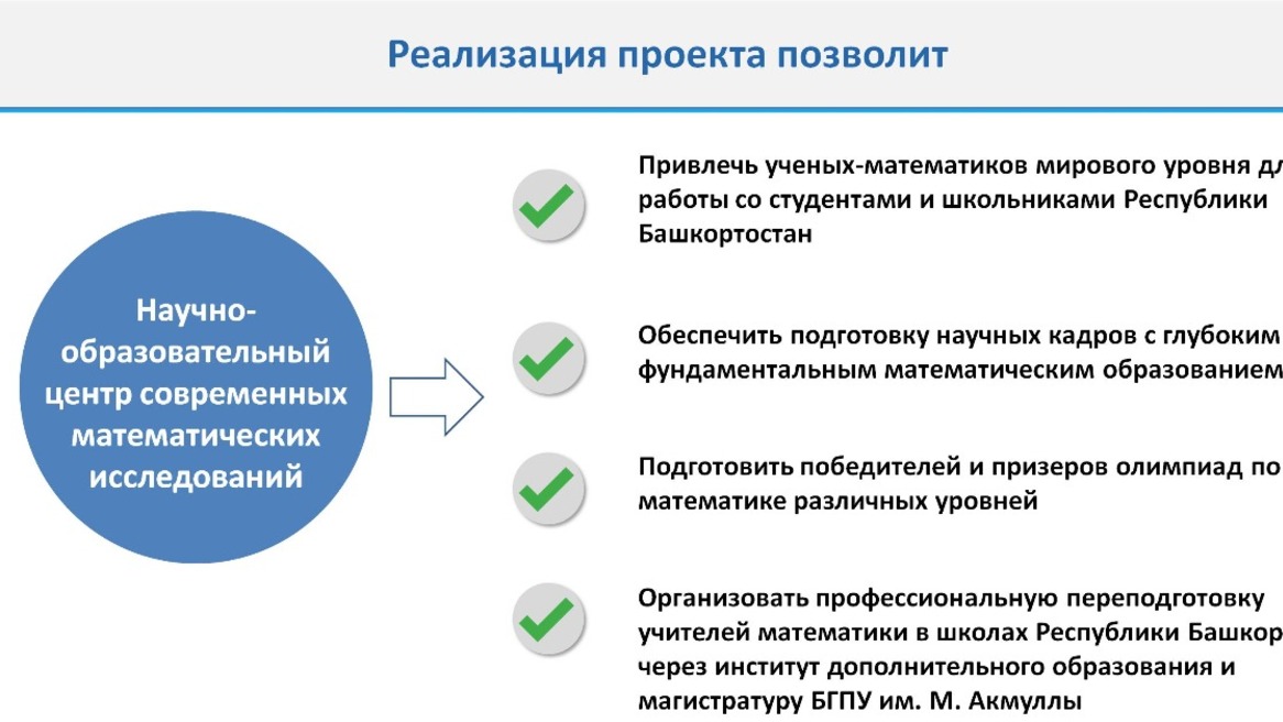 «Уфа, наряду с Москвой, Санкт-Петербургом, Новосибирском и Екатеринбургом уже многие годы является признанным математическим центром страны. Отрадно, что в регионе уделяется столь пристальное внимание математике, что подтверждается созданным по распоряжению Радия Хабирова Центром современных математических исследований. Уверен, деятельность нового Центра, базой которого станет Башгоспедуниверситет, даст новый импульс в этом направлении. Уже сегодня определены серьезные партнеры, такие как МГУ им. Ломоносова, Институт математики УФИЦ РАН, наш НИИ, ученые которых будут совместно работать над решением серьезного спектра задач и воспитывать новое поколение математиков», - отметил Андрей Соболевский.