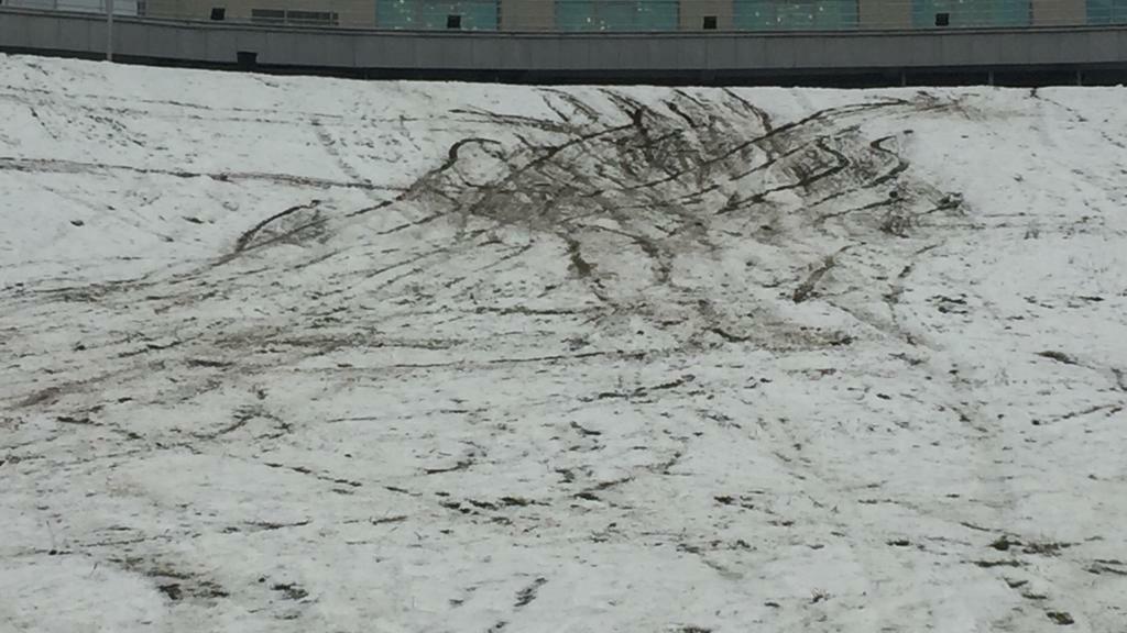 Неизвестные сломали замок на площадку амфитеатра и устроили там гонки на автомобилях. Хулиганы использовали для своих забав почти весь парковый комплекс, включая склон от Конгресс-холла «Торатау».