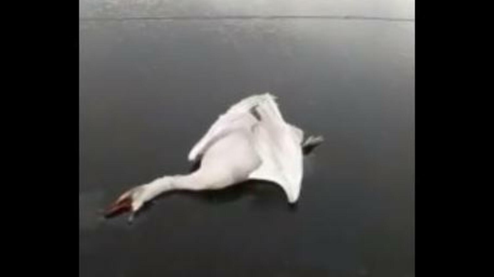 По его словам, трупы лебедей вмерзли в лед, еще не окоченели.