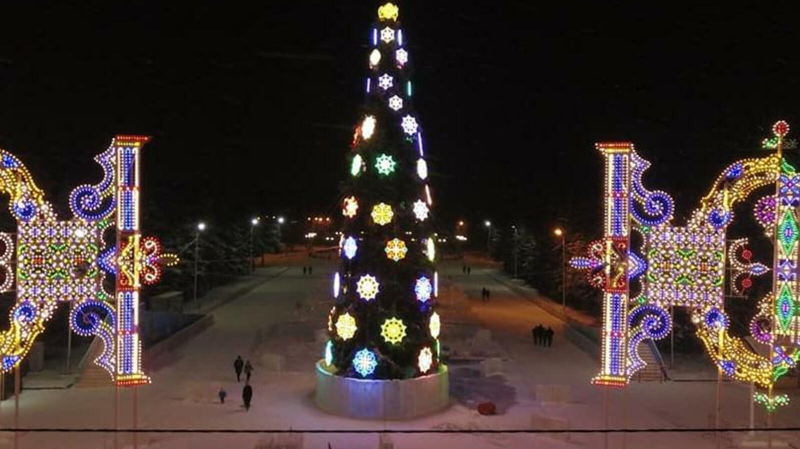 В Уфе протестировали новогоднюю иллюминацию на площади имени Ленина