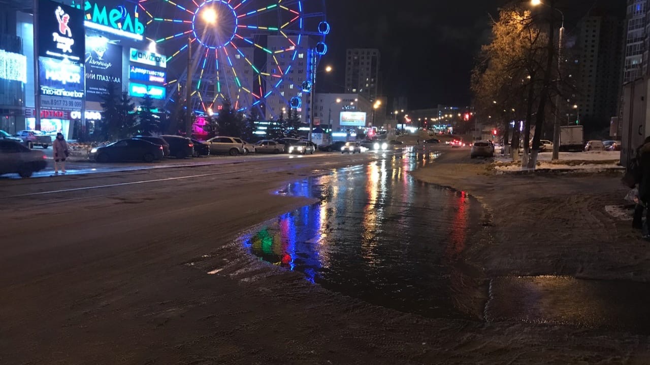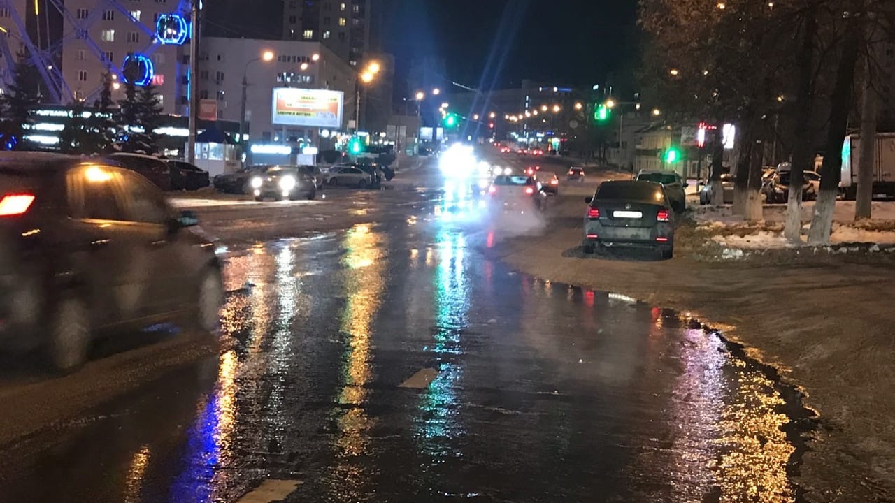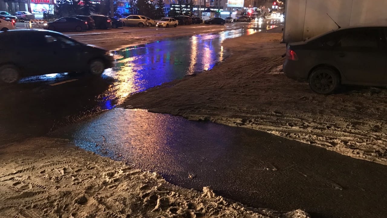Пар и зловоние: в Уфе затопило проезжую часть по улице Менделеева