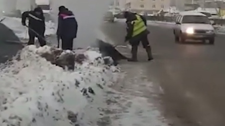 УФА, 15 дек 2019. /ИА «Башинформ»/. В Стерлитамаке рабочие укладывали асфальт между сугробами в 12-градусный мороз, сообщает SterlitamakCity.ru.