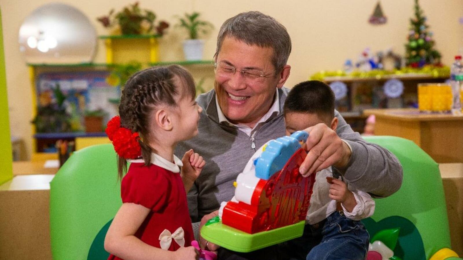 Радий Хабиров пришел не с пустыми руками, и новогодние подарки надолго захватили внимание ребят. Настолько, что видеоролик пришлось снимать с нескольких дублей, пытаясь поймать эмоции развеселившихся малышей.