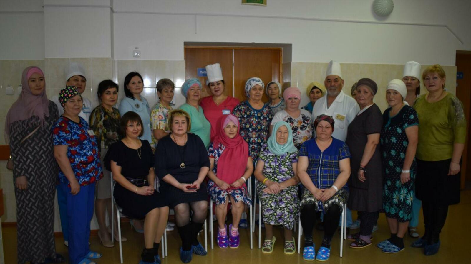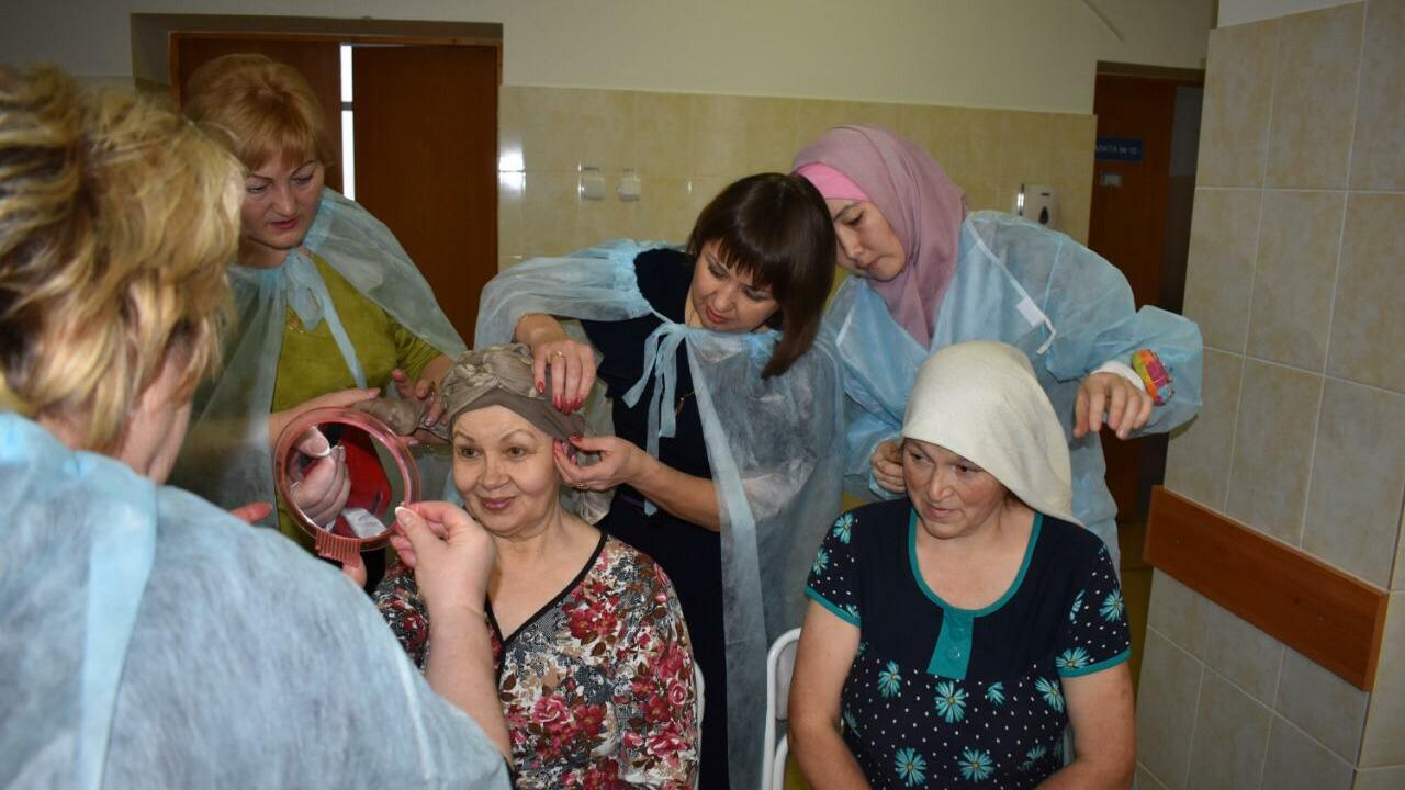 «Все это внушает нам чувство доверия, повышает уверенность на выздоровление, способствует эффективному излечению», - рассказали пациенты онкоцентра во время общения.Для представительниц прекрасного пола, находящихся на лечении, Амина Аксарова из Мелеуза провела мастер-класс по покрытию головы, завязыванию платков и ношению хиджаба. Все женщины пробовали завязывать на себе красивые платки, которые были им подарены.