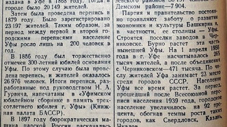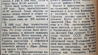 Хотя проведенная в 1937 году Всесоюзная перепись была аннулирована и ее итоги нигде не публиковались, в Уфе численность населения этой переписью показана правильно, отмечают в газете. Эти данные отражают быстрый рост населения города в связи с развернувшимся промышленным строительством. В начале 1937-го в Уфе было 210 926 жителей. В период между 1931 и 1937 годами население столицы Башкирии ежегодно увеличивалось на 13-15 тысяч человек.