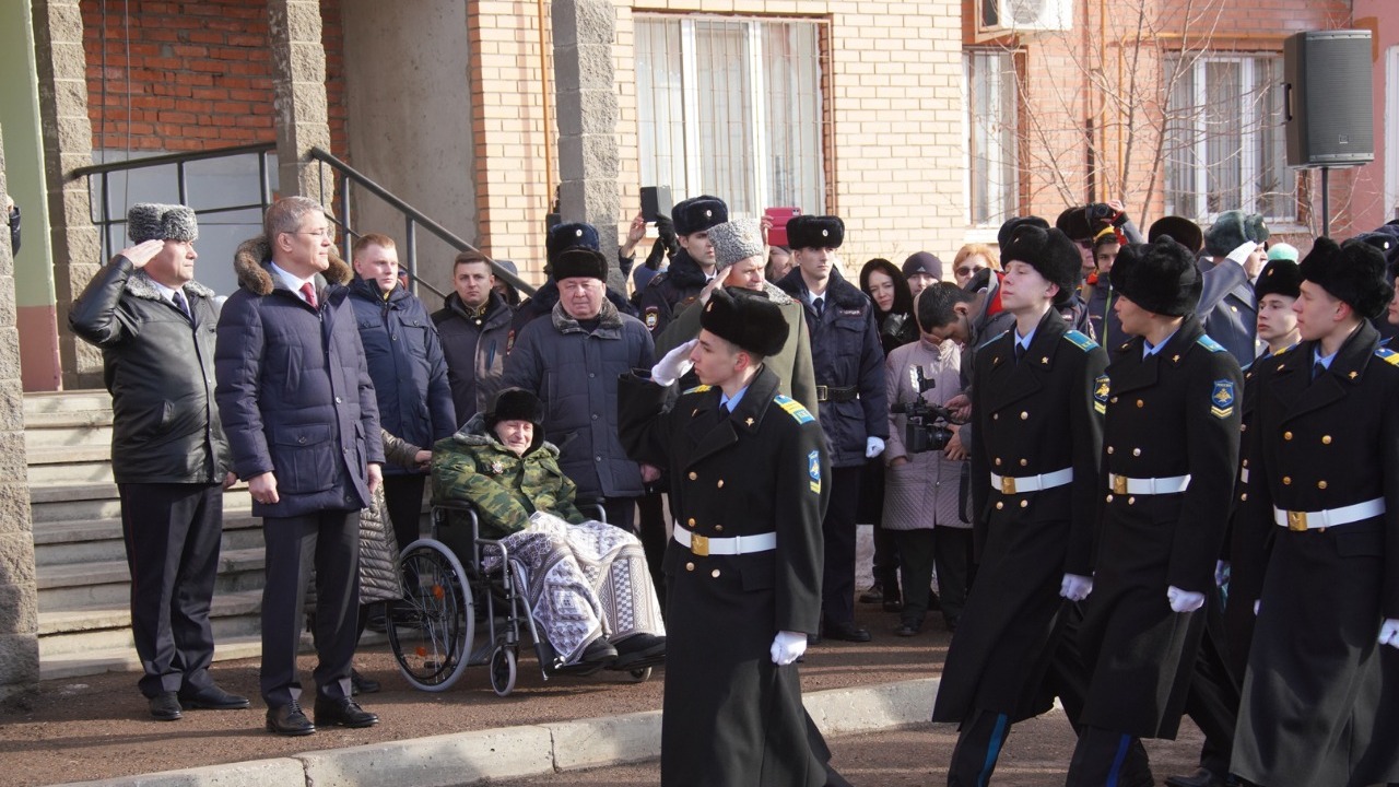 Глава Башкирии Радий Хабиров принял в Уфе парад, посвященный Дню защитника Отечества, ветеранам Великой Отечественной войны и воинам-интернационалистам. Действо развернулось под окнами квартиры ветерана легендарной 112-й Башкавдивизии, кавалера орденов Красного Знамени, Ленина, Красной Звезды, Отечественной войны I степени и Александра Невского Мугина Нагаева.
