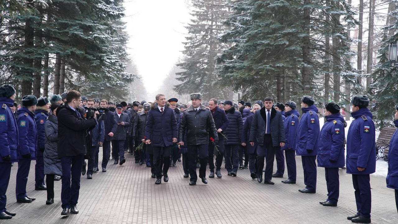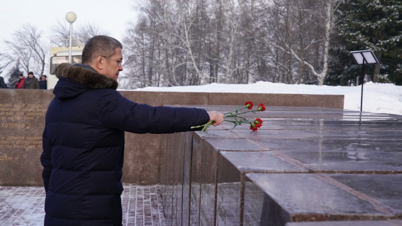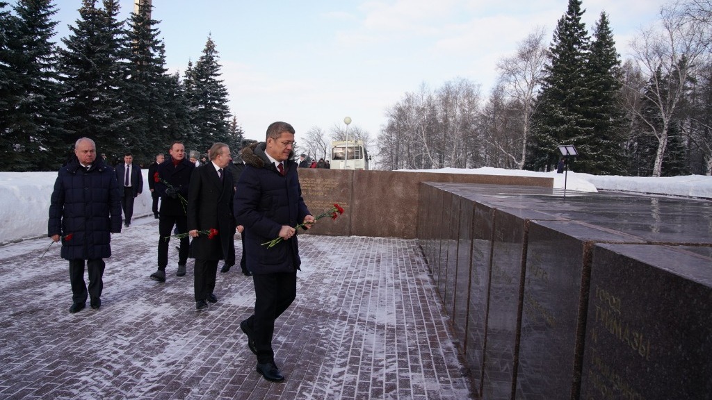 В уфимском парке Победы глава республики Радий Хабиров вместе с вице-премьером правительства Иреком Сагитовым возложил цветы к памятнику бессмертного подвига Героев Советского Союза Александра Матросова и Миннигали Губайдуллина. К Вечному Огню Радий Хабиров поставил букет от всех жителей региона, а лично от себя руководитель республики возложил цветы к стеле, посвященной героям Ишимбайского района.
