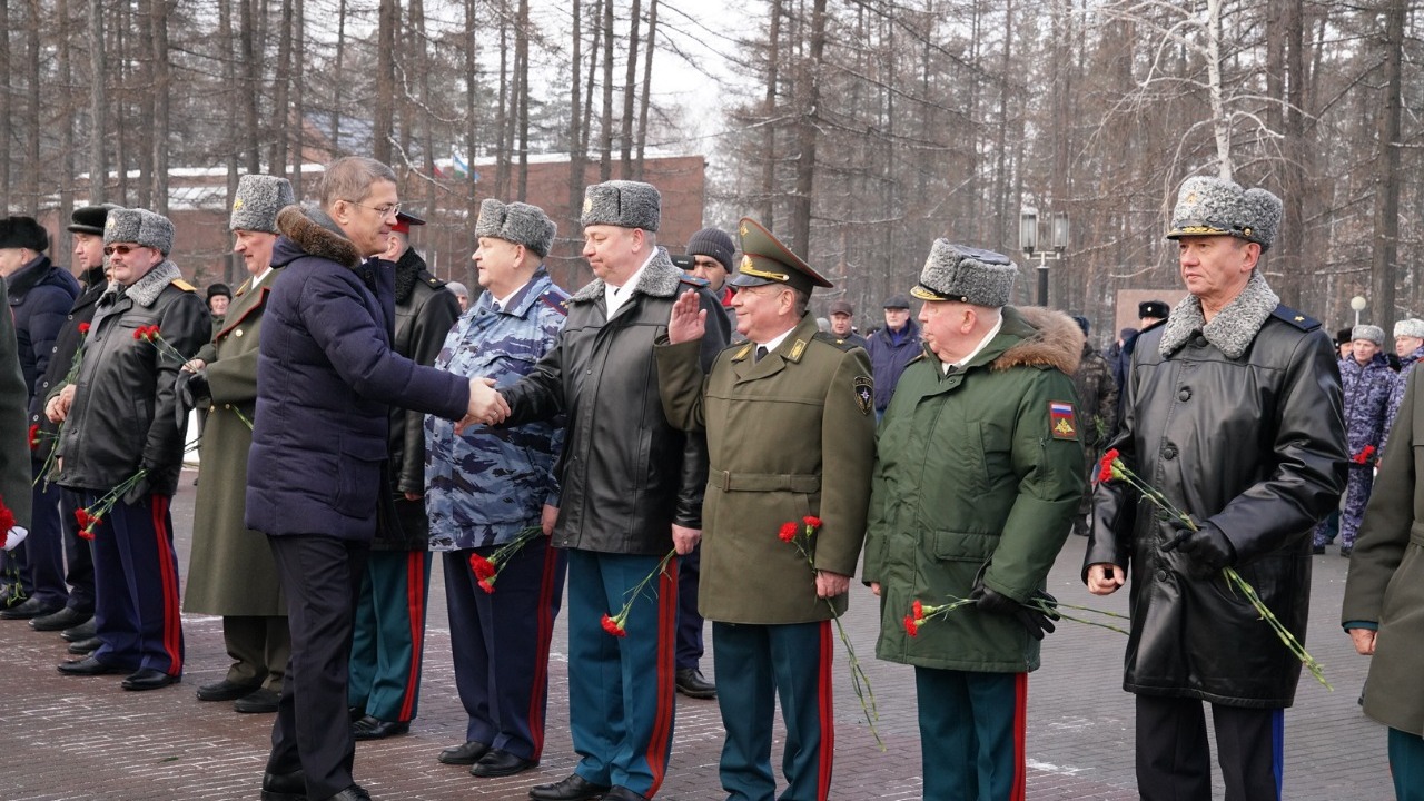 «Сегодня у нас очень важный день – День защитника Отечества. У нас будет очень много мероприятий, посвященных Вам, дорогие защитники. Я хотел всем пожелать мирного неба, доброго здоровья. Мы со своей стороны сделаем так, чтобы люди жили комфортно. А вы нас защищайте», - сказал Радий Хабиров в поздравительной речи.