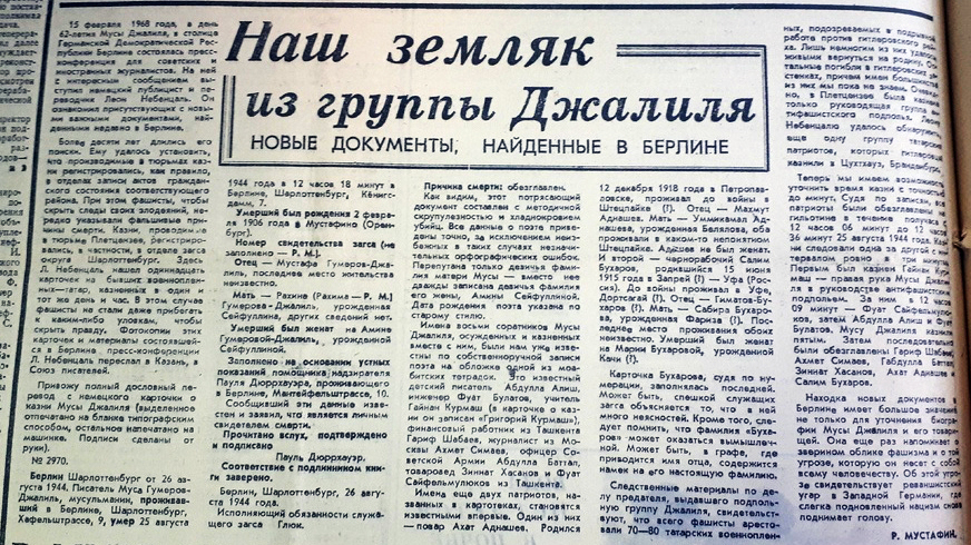 31 марта 1968 года газета «Советская Башкирия» опубликовала дословный перевод с немецкого карточки о смерти Мусы Джалиля № 2970.