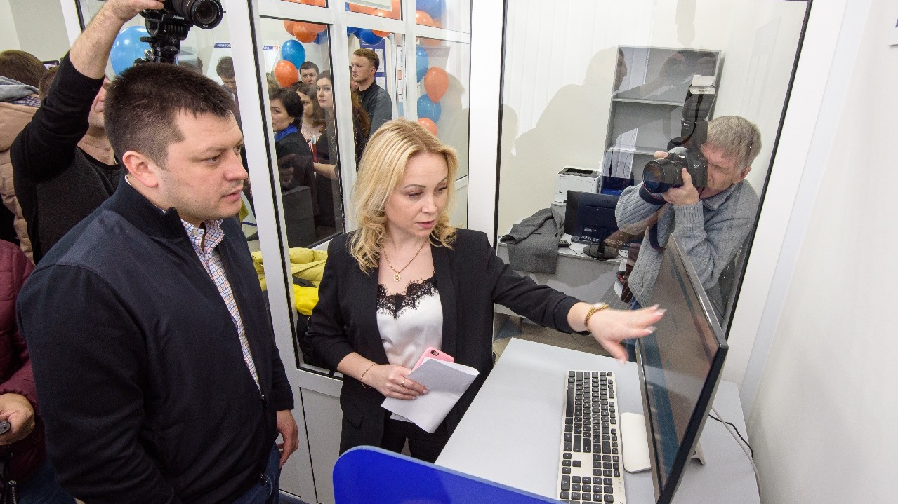 Для приема платежей в Центре обслуживания клиентов организованы четыре кассы – при этом оплата за услугу по обращению с ТКО здесь производится БЕЗ КОМИССИИ. В офисе расположился гостевой компьютер, на котором сотрудники Центра обучают граждан, как подключаться к Личному кабинету и оплачивать через него услугу по обращению с ТКО онлайн без комиссии. Личный кабинет работает уже с прошлого года, но не все потребители до сих пор знают, что в нем можно самостоятельно проследить всю историю начислений и оплат, подать обращение, узнать, есть ли на текущий момент задолженность. Кроме того, в новом офисе для удобства граждан организована электронная очередь.