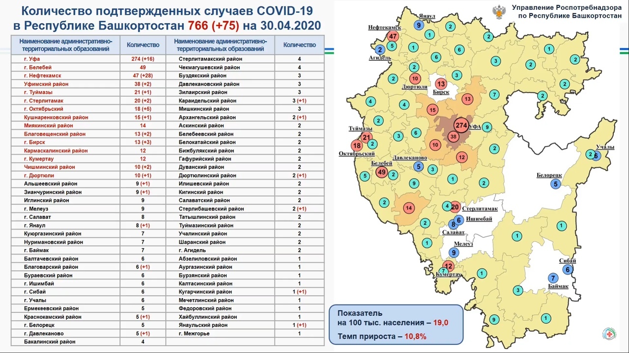 Всего в информационной системе зарегистрировано 766 подтвержденных случаев новой коронавирусной инфекции. За прошедшие сутки – плюс 75 подтвержденных результатов COVID-19. На амбулаторном лечении находится 231 человек с легкой формой заболевания», - уточнила заместитель руководителя Минздрава Башкирии.