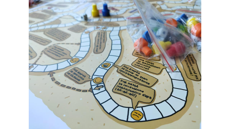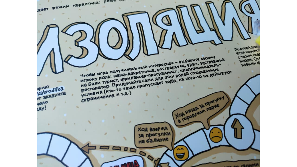 «Настольная игра ходилка-бродилка «Самоизоляция». Большой формат (60*40, спасибо типографии «Ювента»), в комплекте идут фишки и игральная кость. Игра интересная и может улучшаться самим обладателем игры (новые правила, новые сценарии поведения для играющих и т.д.)», - уточнил бизнесмен.