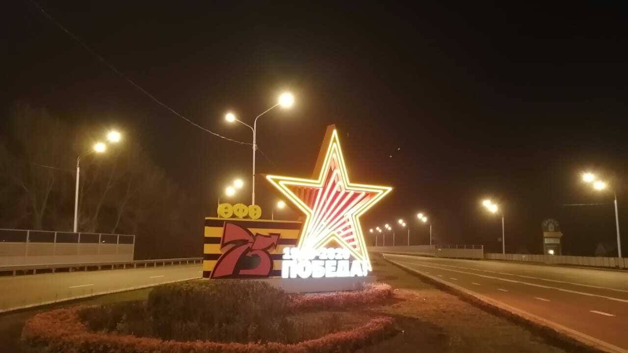 К 9 мая в Уфе появилась новая праздничная композиция, которая дополнила существующий комплекс световых букв «Уфа». Конструкция в виде звезды и памятных надписей о 75-летии Победы в Великой Отечественной войне установлена на участке между надземным пешеходным переходом и остановкой общественного транспорта «Школьная» по направлению в город.