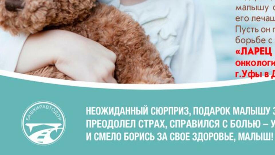 «О таких коробочках в онкологических отделениях я узнала случайно: рассказала одна из наших бывших сотрудниц, ее сын как раз проходит лечение. Я позвонила в больницу, чтобы узнать, нужна ли какая-то помощь, - рассказывает куратор акции Людмила Крюкова. - Выяснилось, что коробки наполняют родители или сами врачи, покупая из своей зарплаты подарки маленьким пациентам. Мы решили наполнить коробки и придумали акцию по сбору подарков детям».В 55 филиалах «Башкиравтодора» работает более 5000 сотрудников. Многие уже в первые два дня акции (а стартовала она 19 мая) откликнулись и стали приносить в ДРСУ подарки детям. Суммы и число подарков никак не регламентируются, но сотрудники стараются принести побольше игрушек, раскрасок, канцелярских товаров.