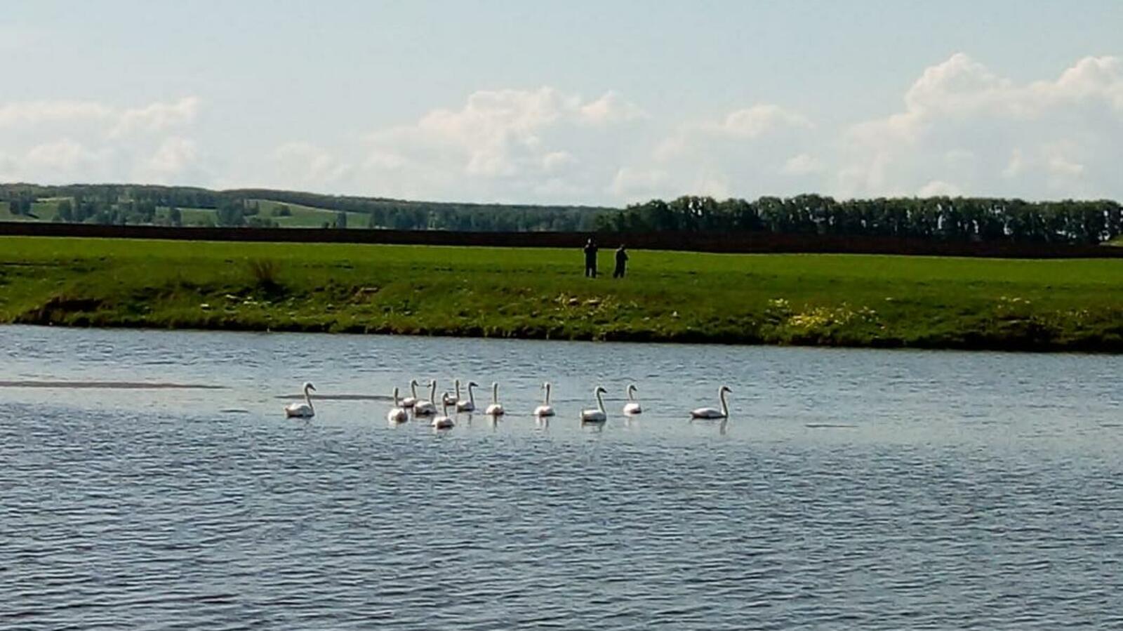 12 белоснежных птиц облюбовали пруд на территории Юмашевского сельсовета в Чекмагушевском районе.