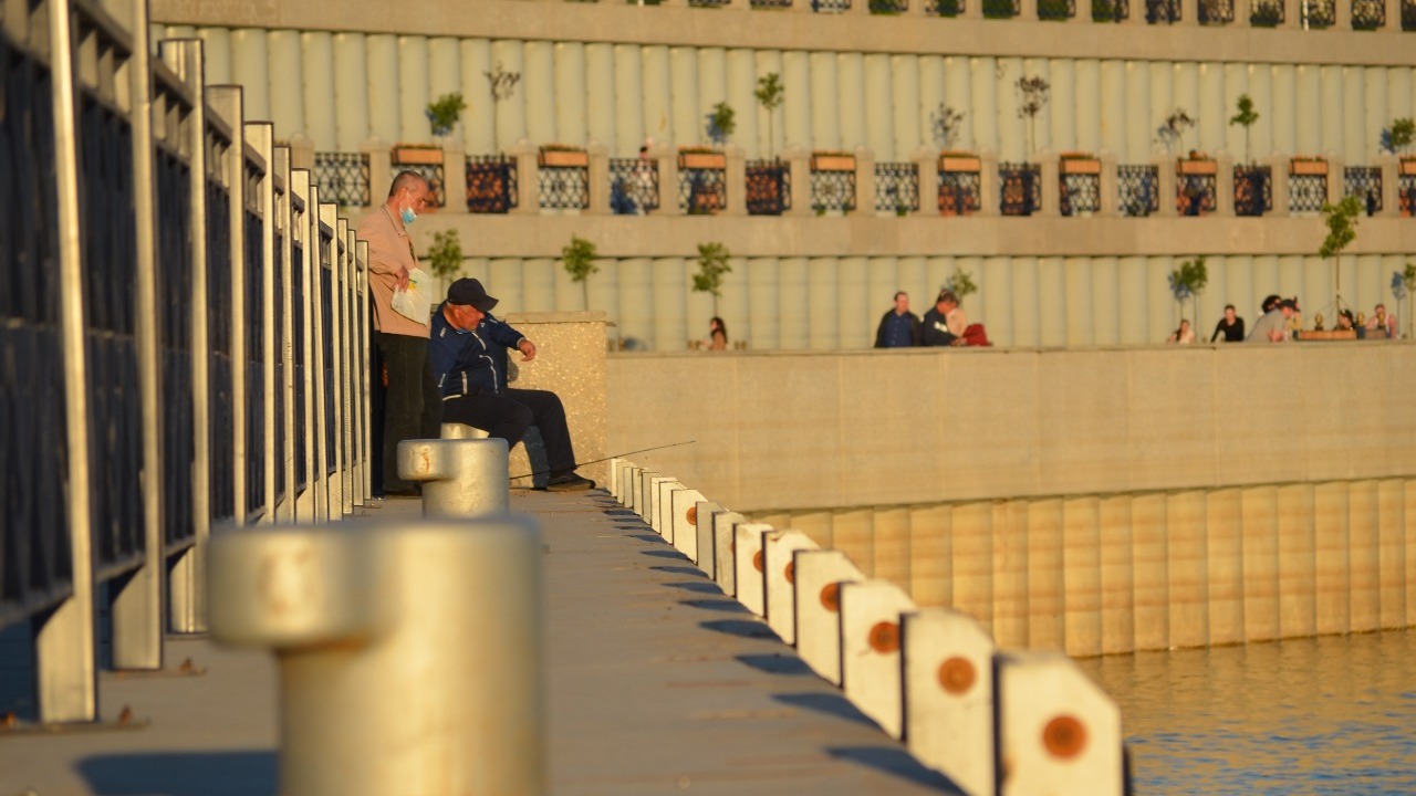 Любители рыбалки закидывают удочки в ожидании улова.