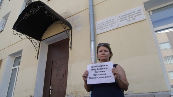 8 июля уфимские журналисты вышли на одиночные пикеты к мемориальной доске писателю Сергею Довлатову, сообщает портал «Медиакорсеть». Сотрудники изданий «Коммерсант», «РБК», «Аргументы недели», «Башмедиа», «ПроУфу», «Эхо Москвы», БСТ держали плакаты с лозунгами «Журналистика — не преступление». Пикеты прошли без задержаний.