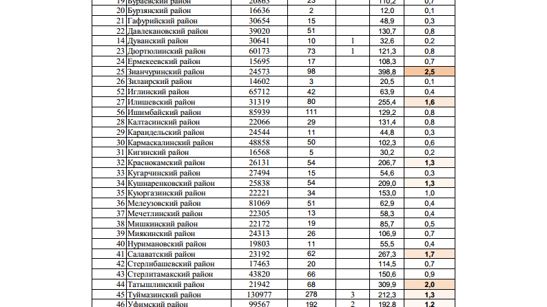 Список заболеваемости включил в себя 9 городов и 54 района республики.